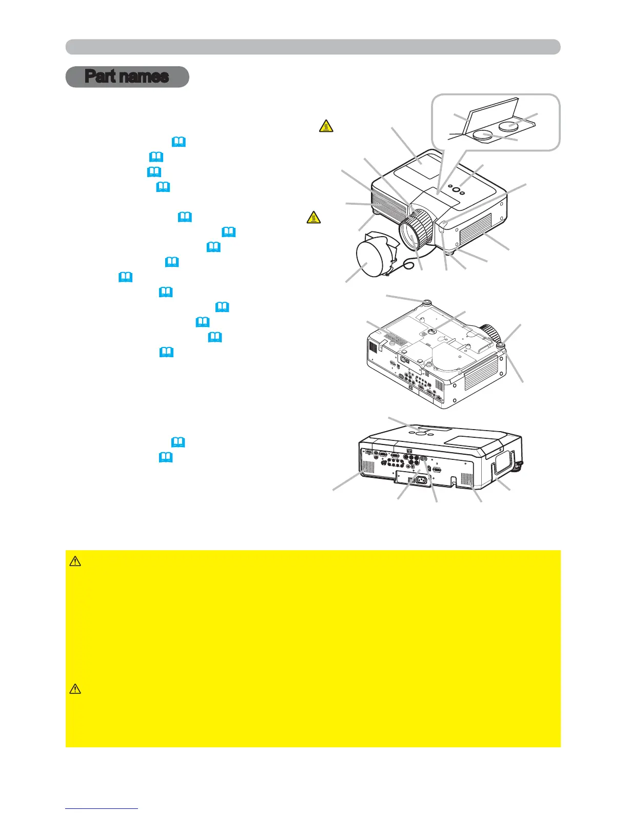 ►HOT! : Do not touch around the lamp cover and the exhaust