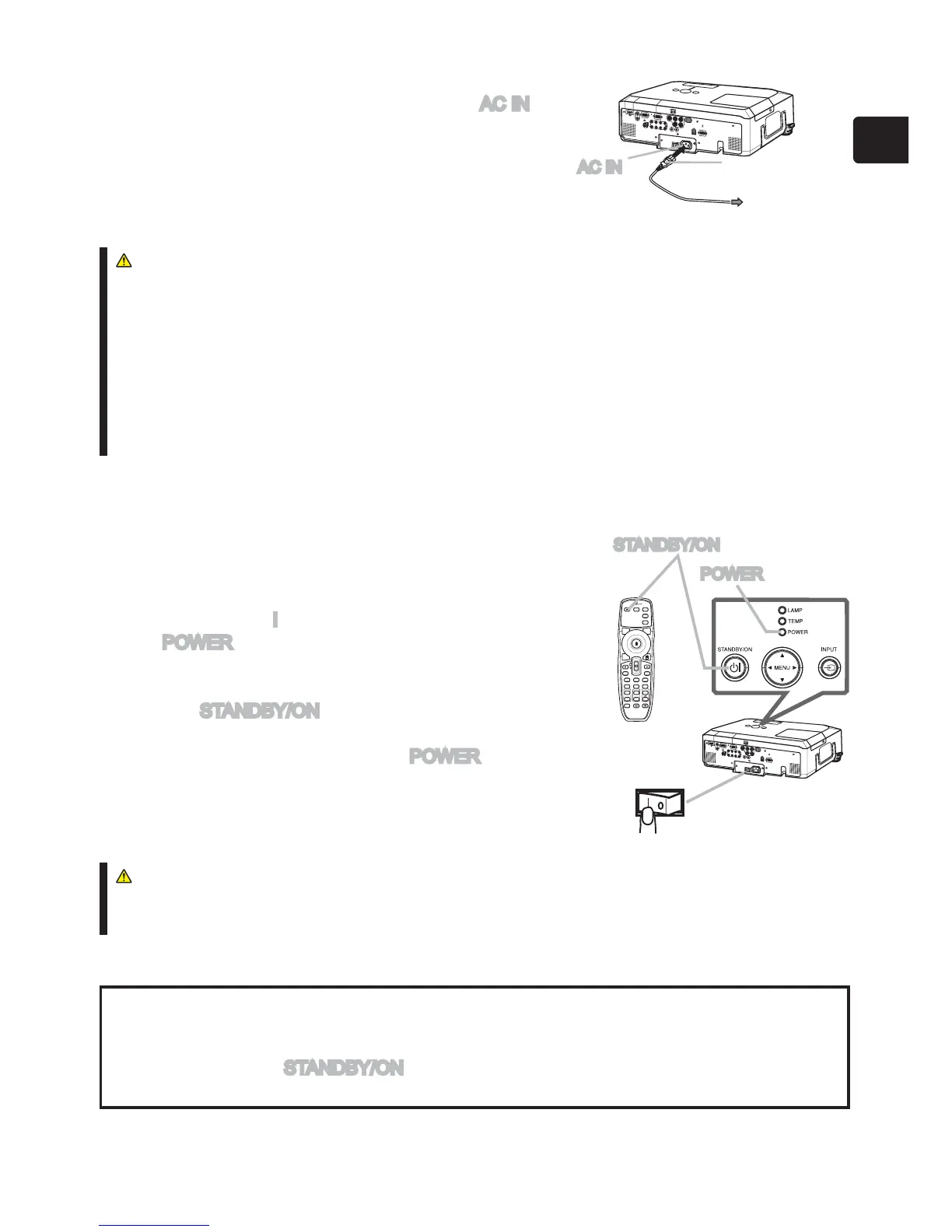 ►A strong light is emitted when the projector’s power is on. Do not look into the lens