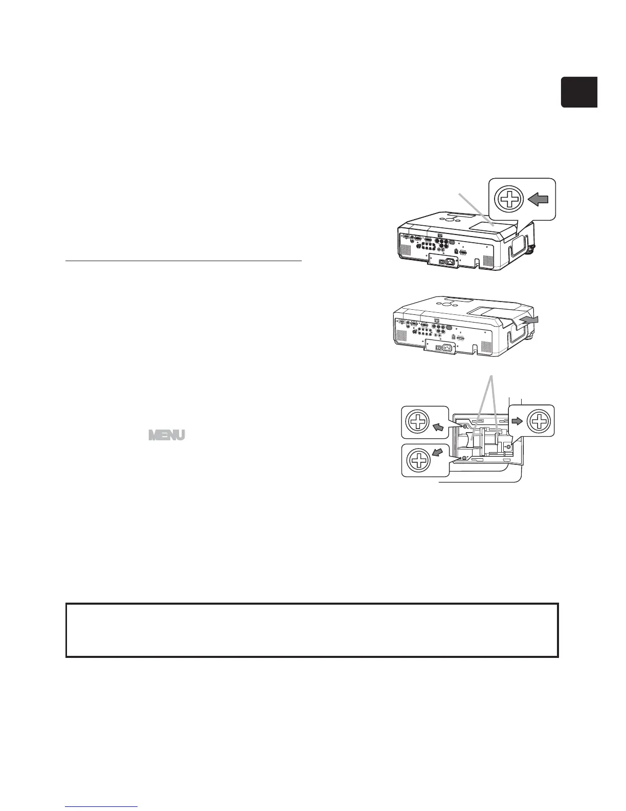 3. Loosen the screw (marked by arrow) of the lamp cover and