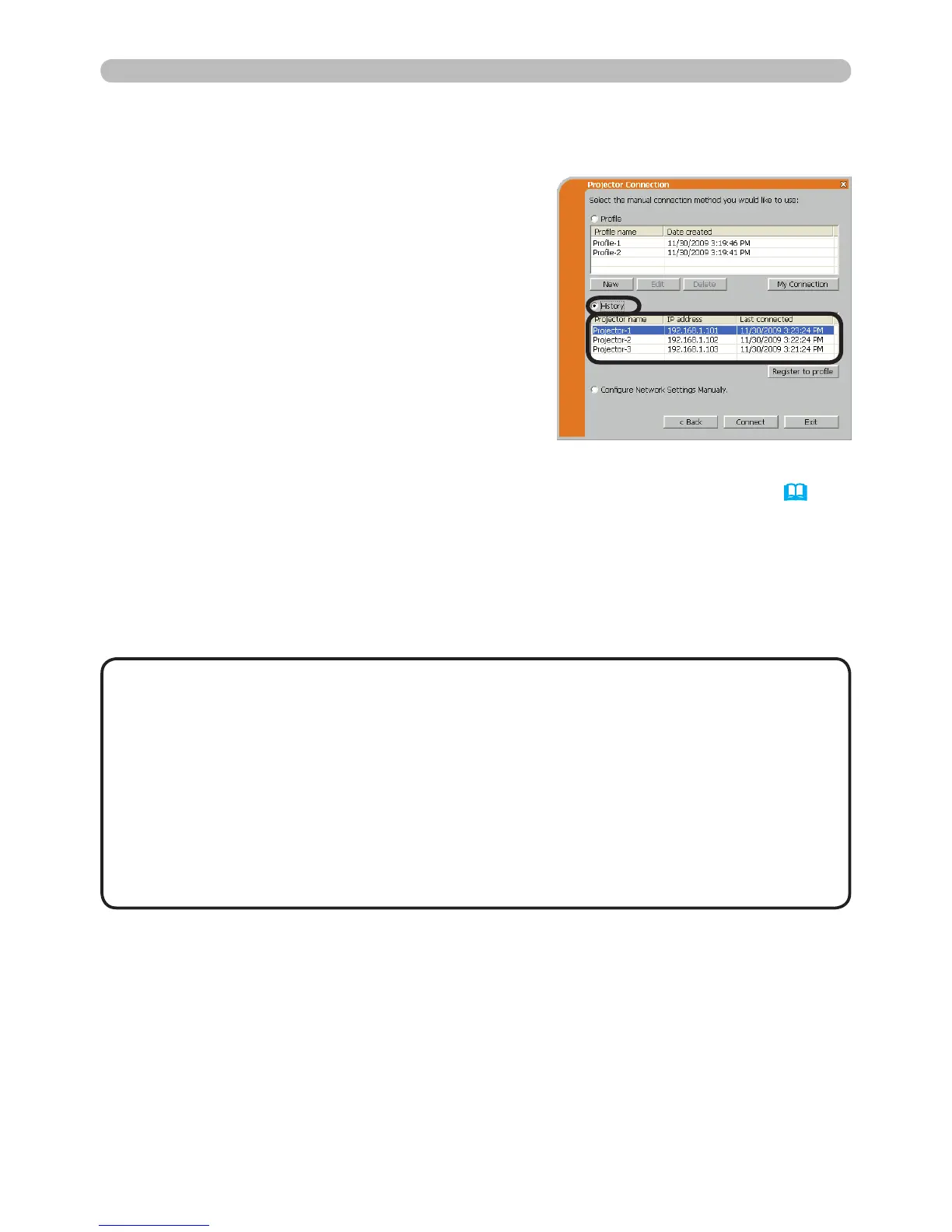 • Even if you use the prole connection, it will be memorized as a history