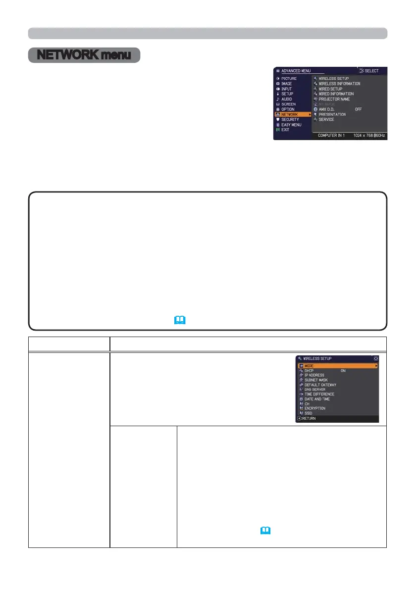 • To use the wireless network function of this projector, the designated