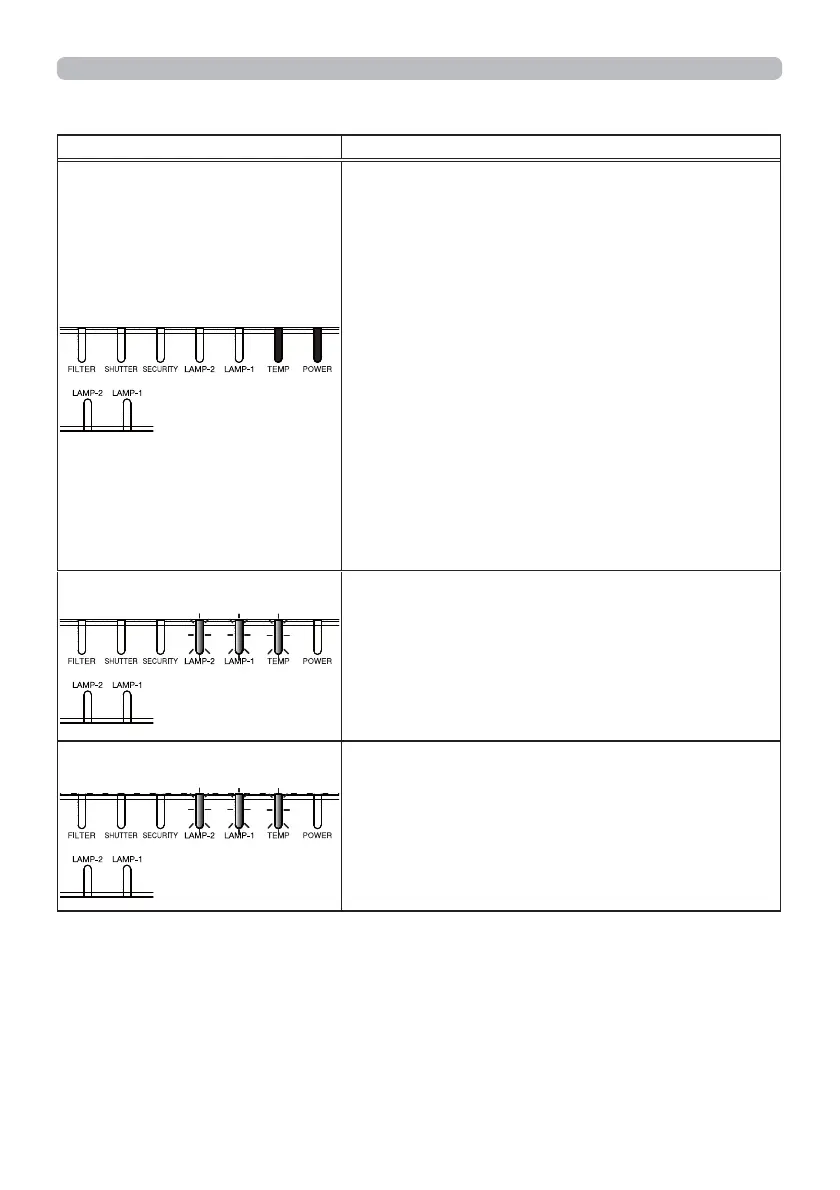 Regarding the indicator lamps (continued)