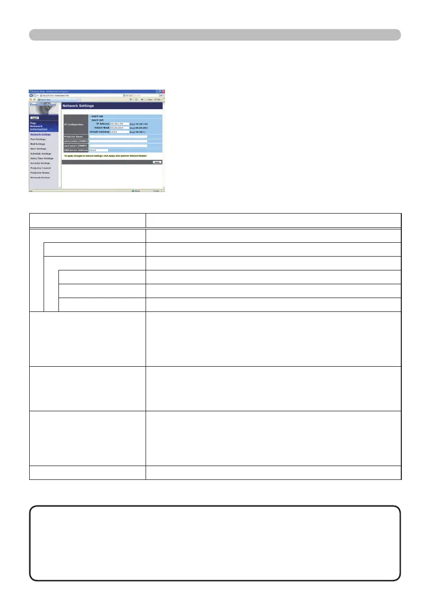 3.1 Conguring and controlling the projector via a web browser (continued)