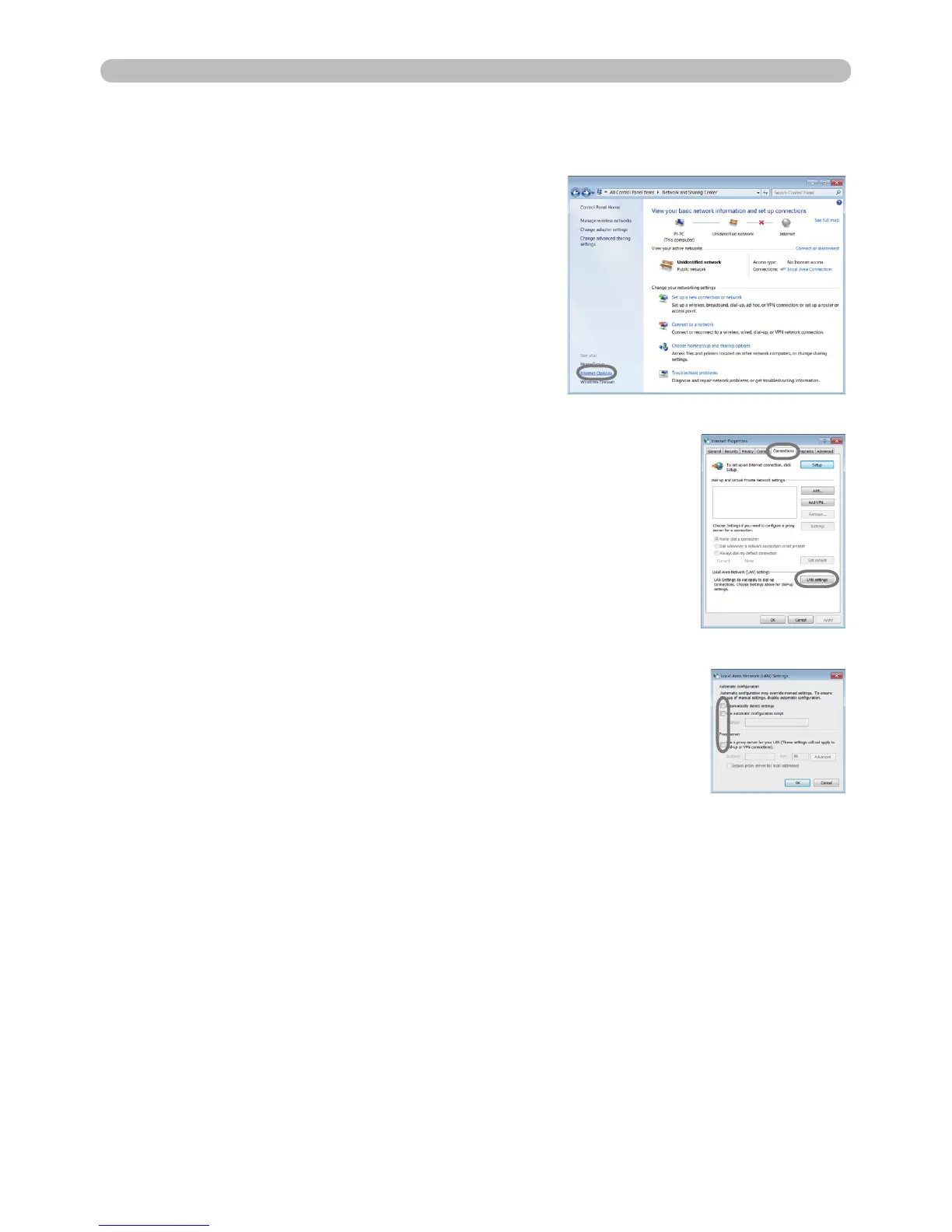 2)  Click “Connections” tab and then click [LAN settings] button