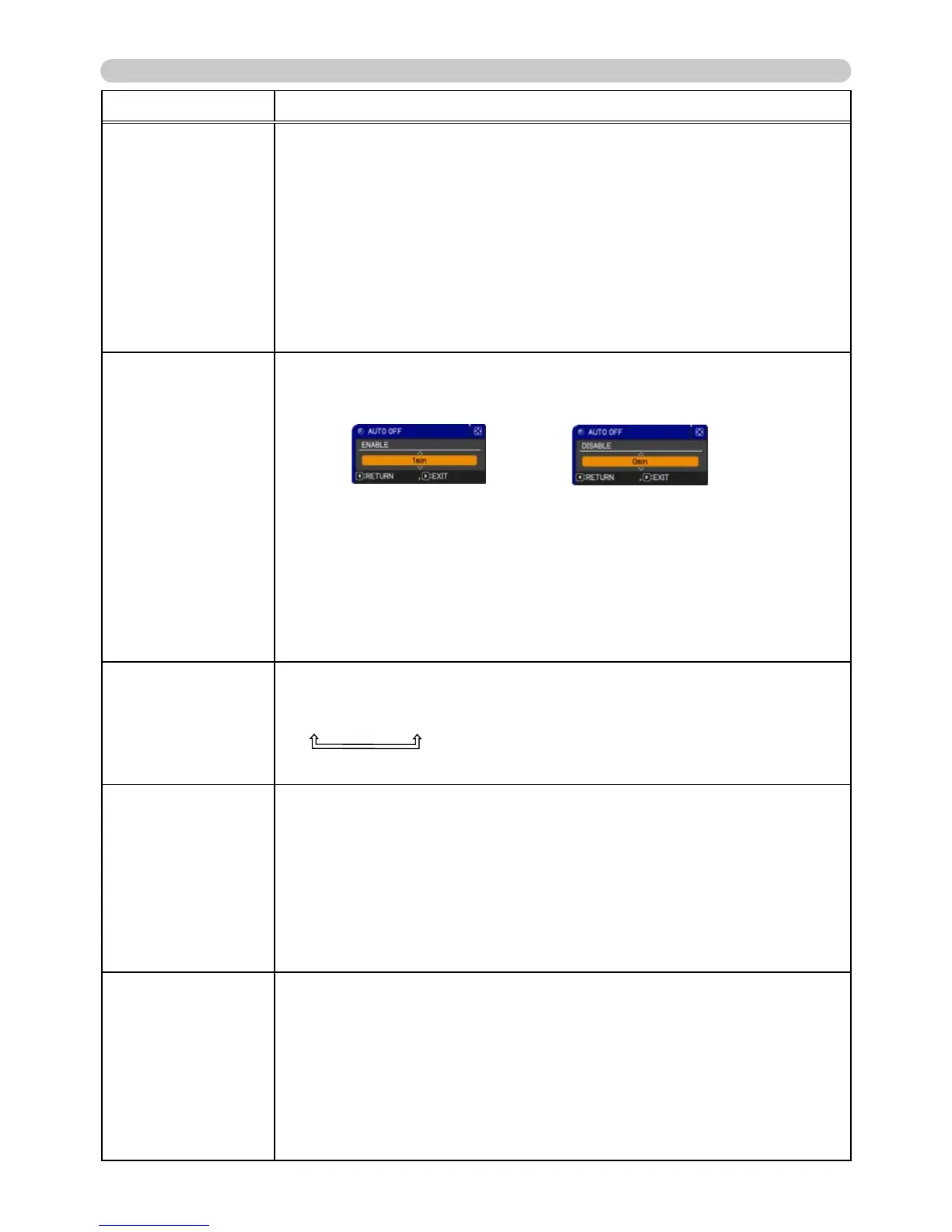 When the time is set to 0, the projector is not turned off automatically.