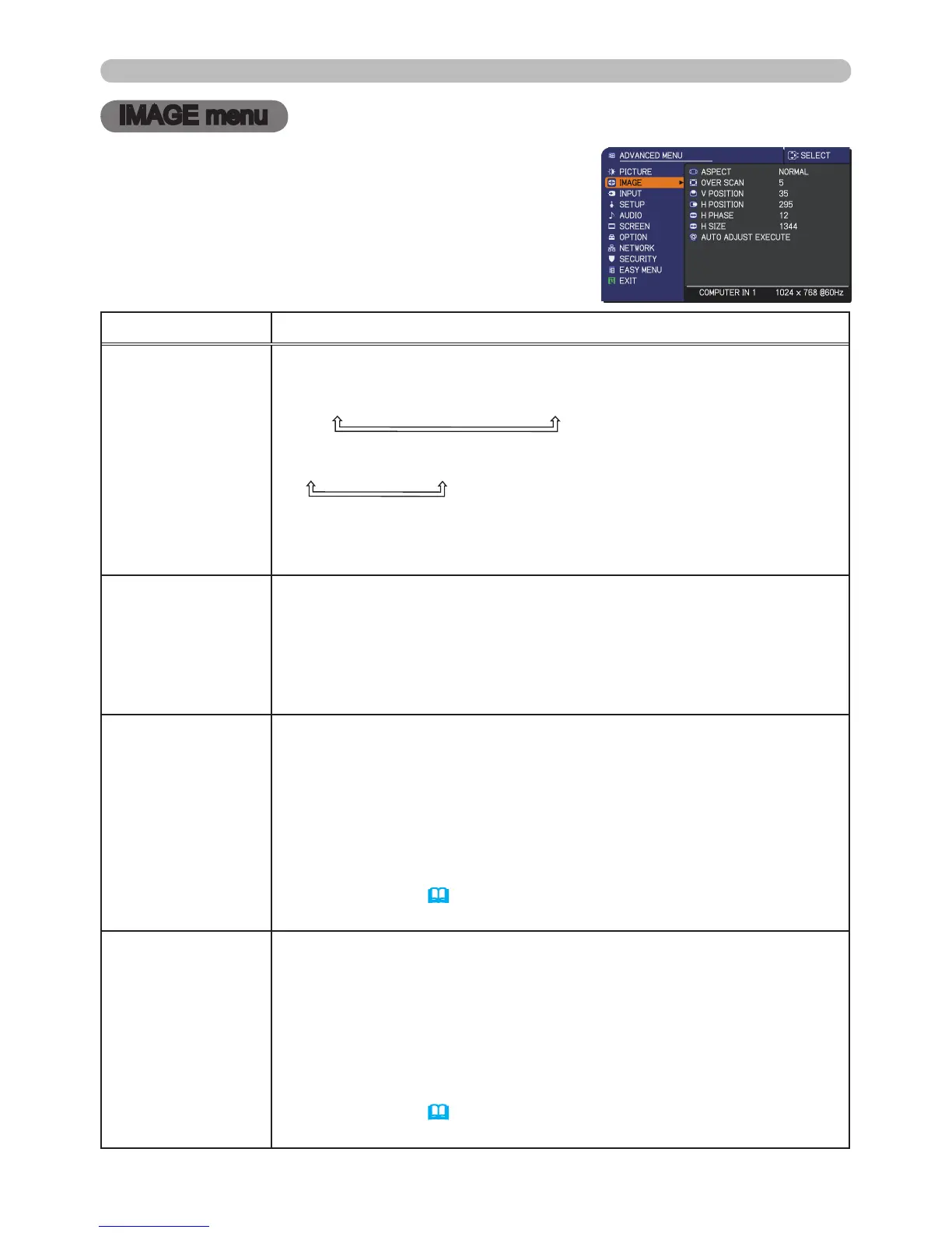 Using the ◄/► buttons adjusts the over-scan ratio.