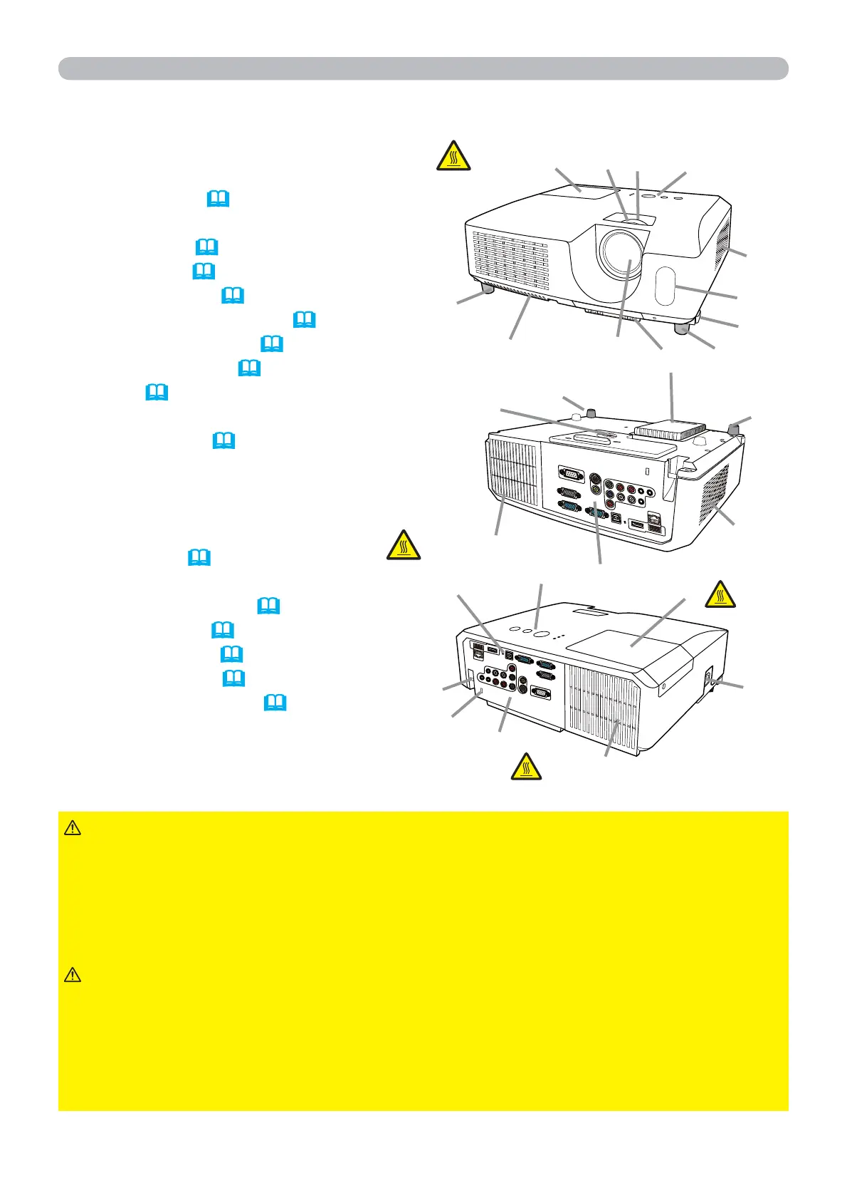 ►HOT! : Do not touch around the lamp cover and the exhaust