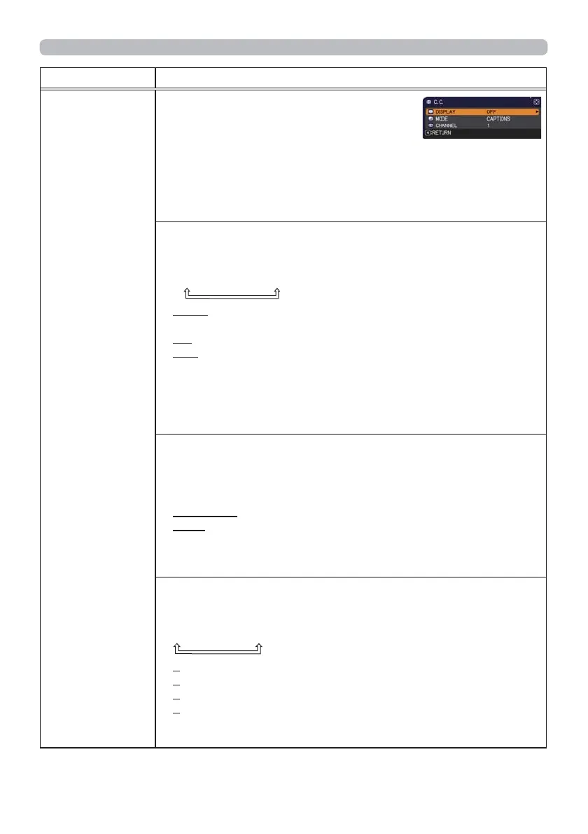 Select Closed Caption CHANNEL from following options using ▲/▼