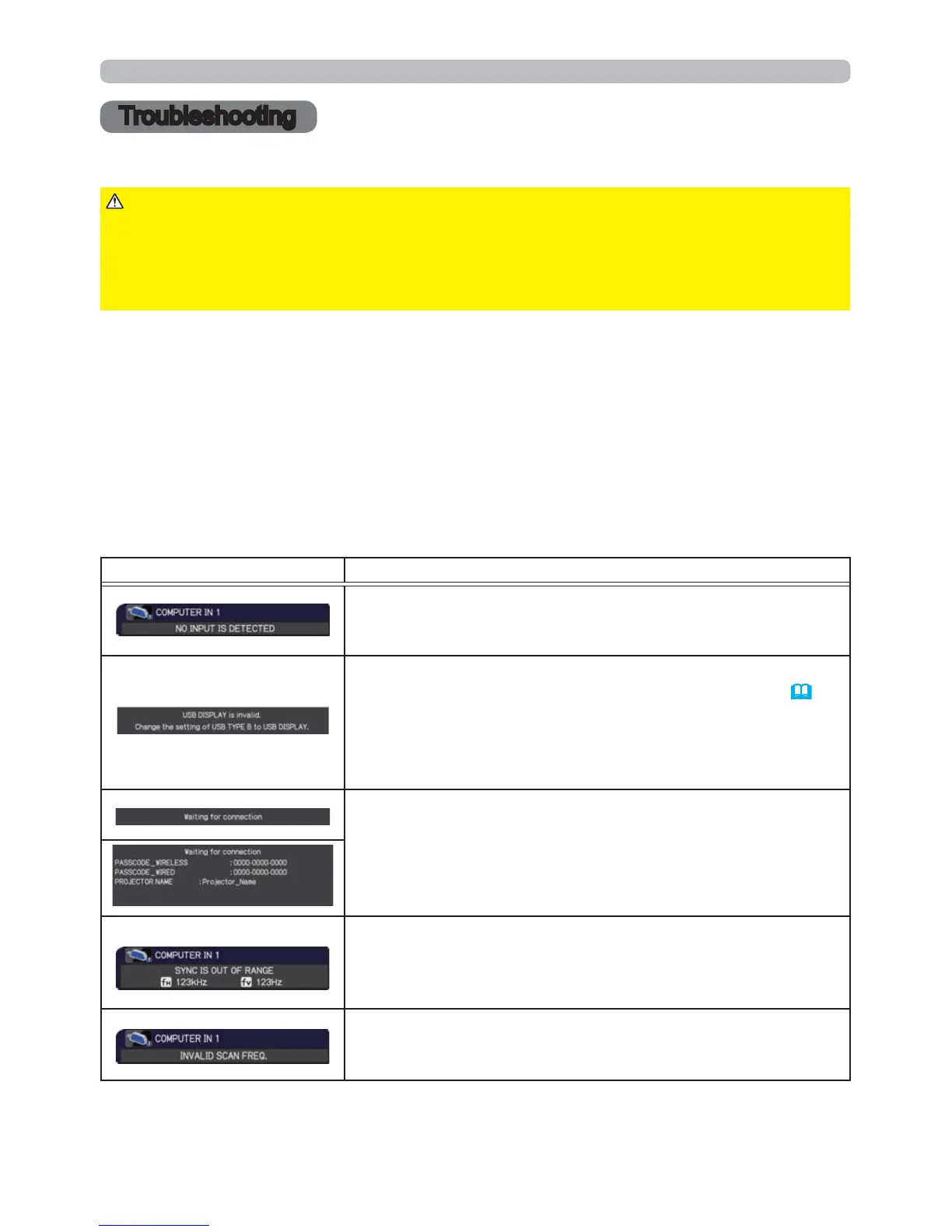 2WKHUZLVHLIDSUREOHPRFFXUVZLWKWKHSURMHFWRUWKHIROORZLQJFKHFNVDQGPHDVXUHVDUH