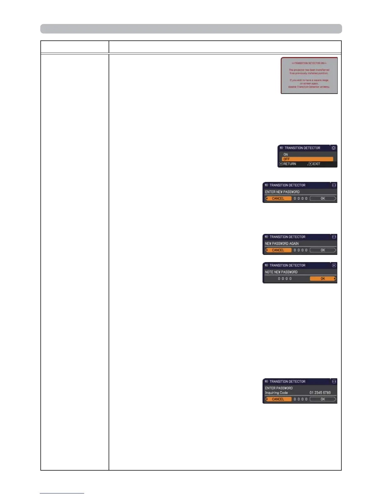2 Turning off the TRANSITION DETECTOR