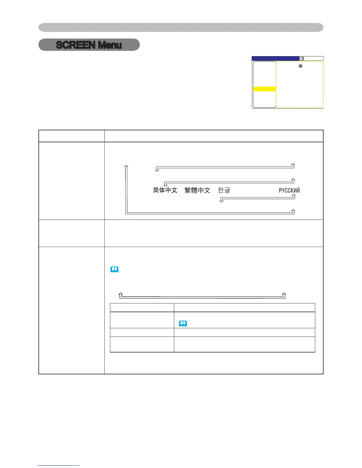 Hitachi CP-X608 - SCREEN Menu