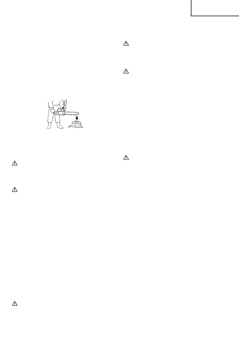 Beim Sägen nicht in einer Linie mit der Kette stehen.