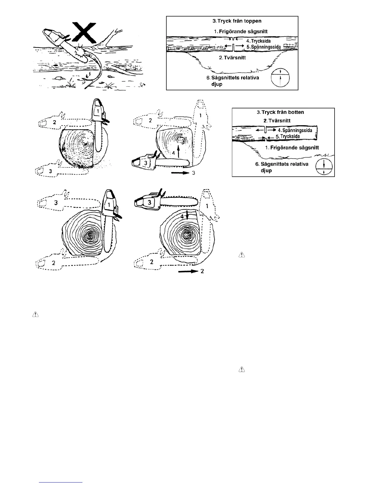 Försök inte att dra loss sågen. Om du gör det,