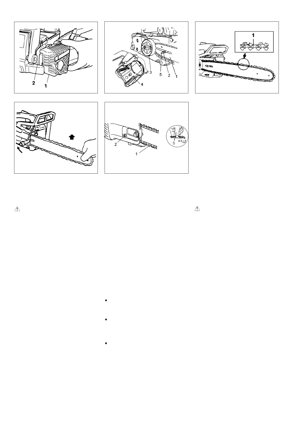 4. Confirm the direction of saw chain (1) is
