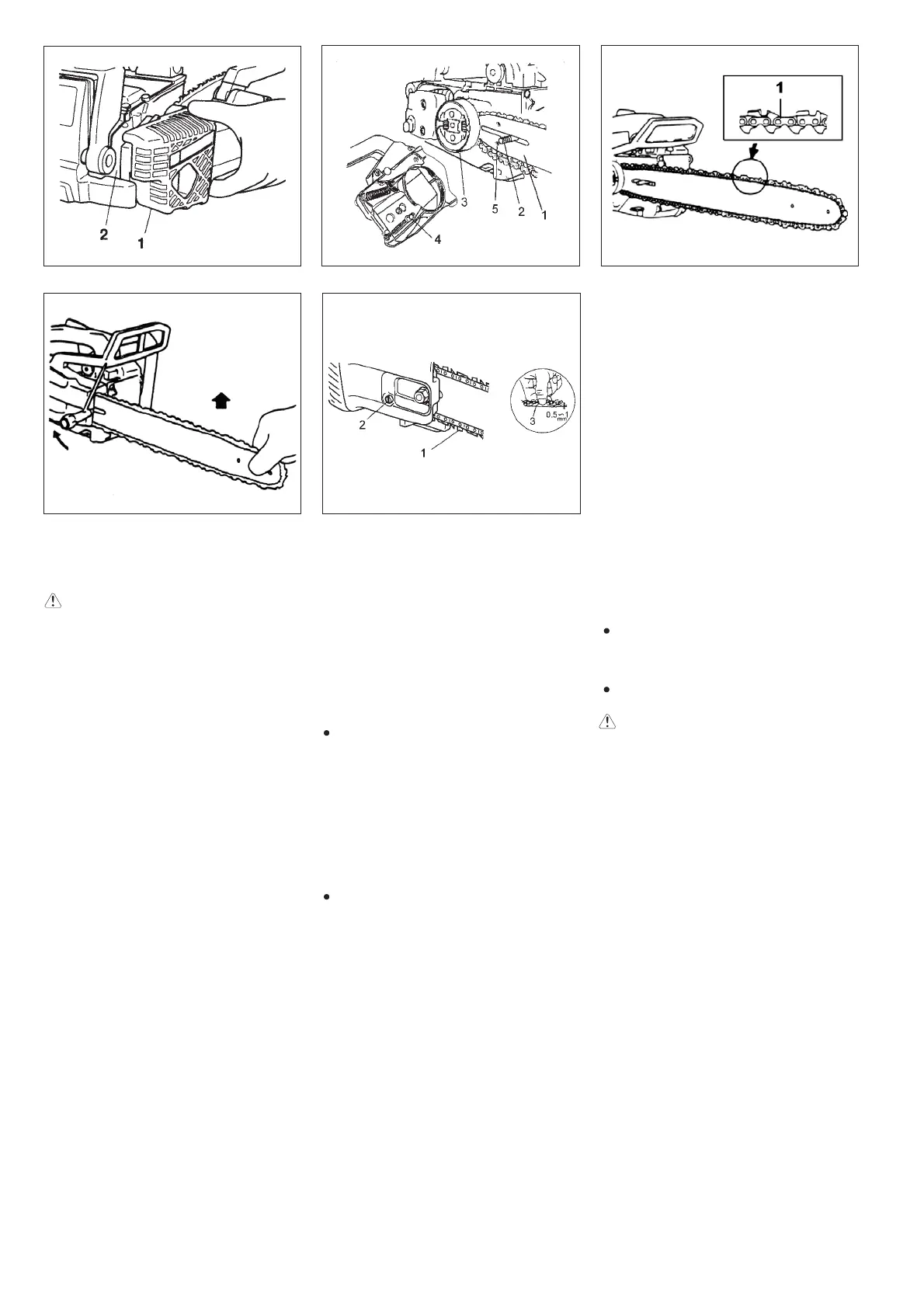 4. Kontrollera att sågkedjan (1) är vänd åt det