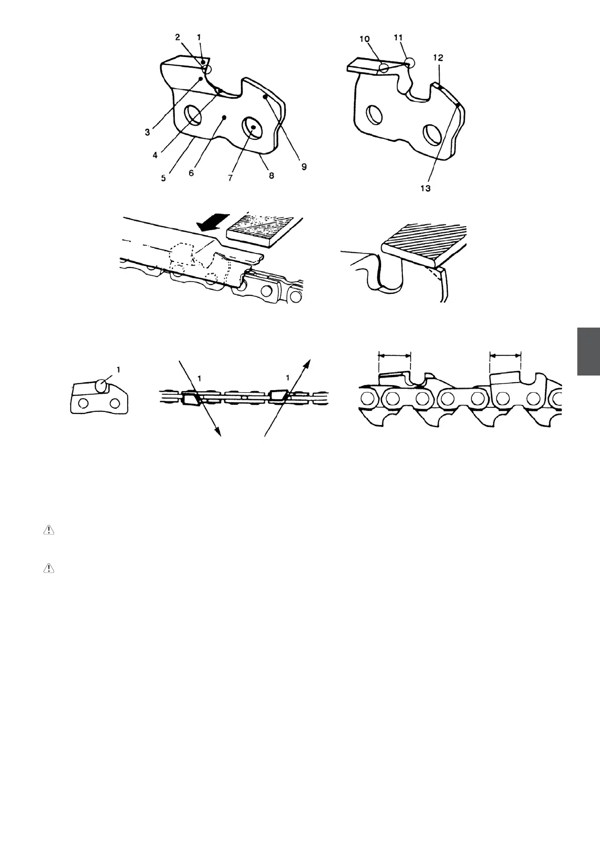 Alle zaagschakels dienen even lang te zijn.