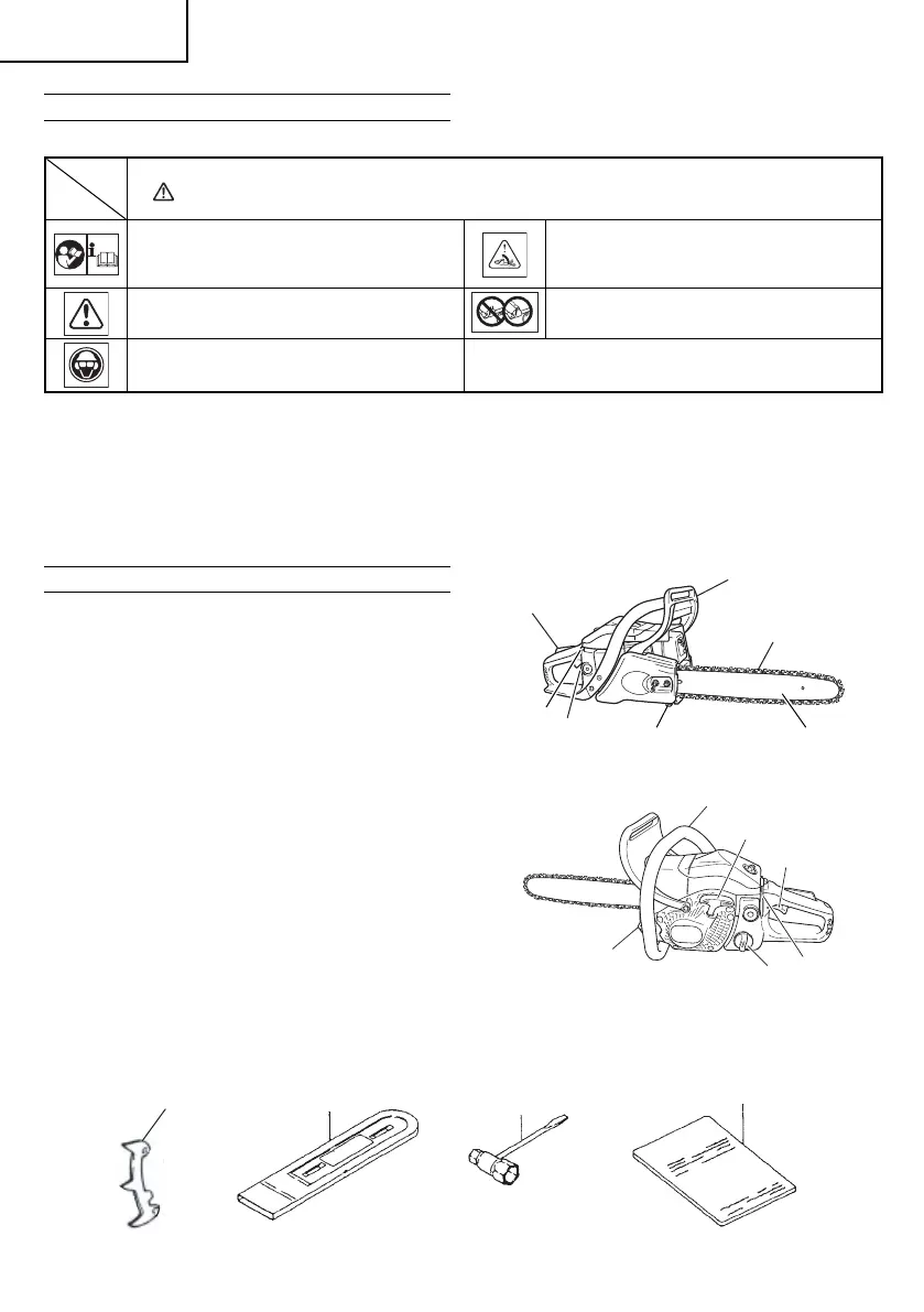 12. Chain brake (Front hand guard): Device for stopping or locking