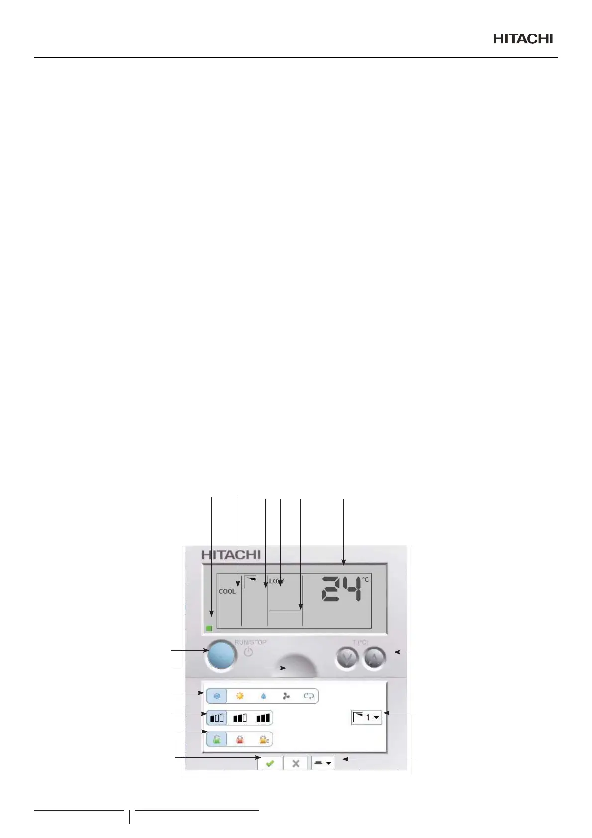 10 Changes the unit mode. From left to right: Auto, Cool, Heat, Dry and Fan.