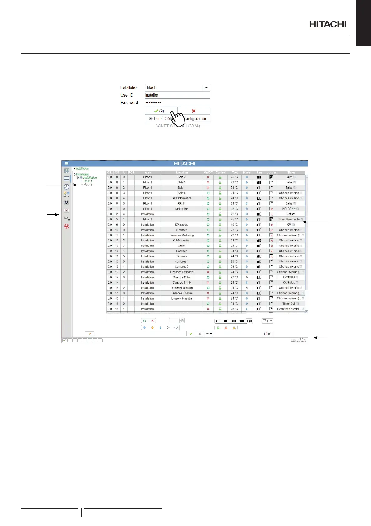 2 Units zone: Lists of all the indoor units with a basic state information.