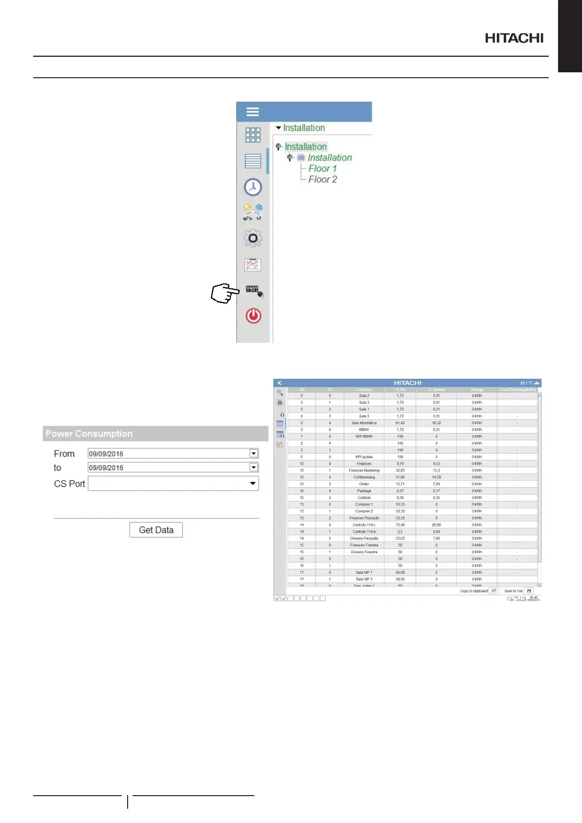 CSNET Manager saves and calculates the percentage of energy consumption of each indoor unit compared to the outdoor units, so