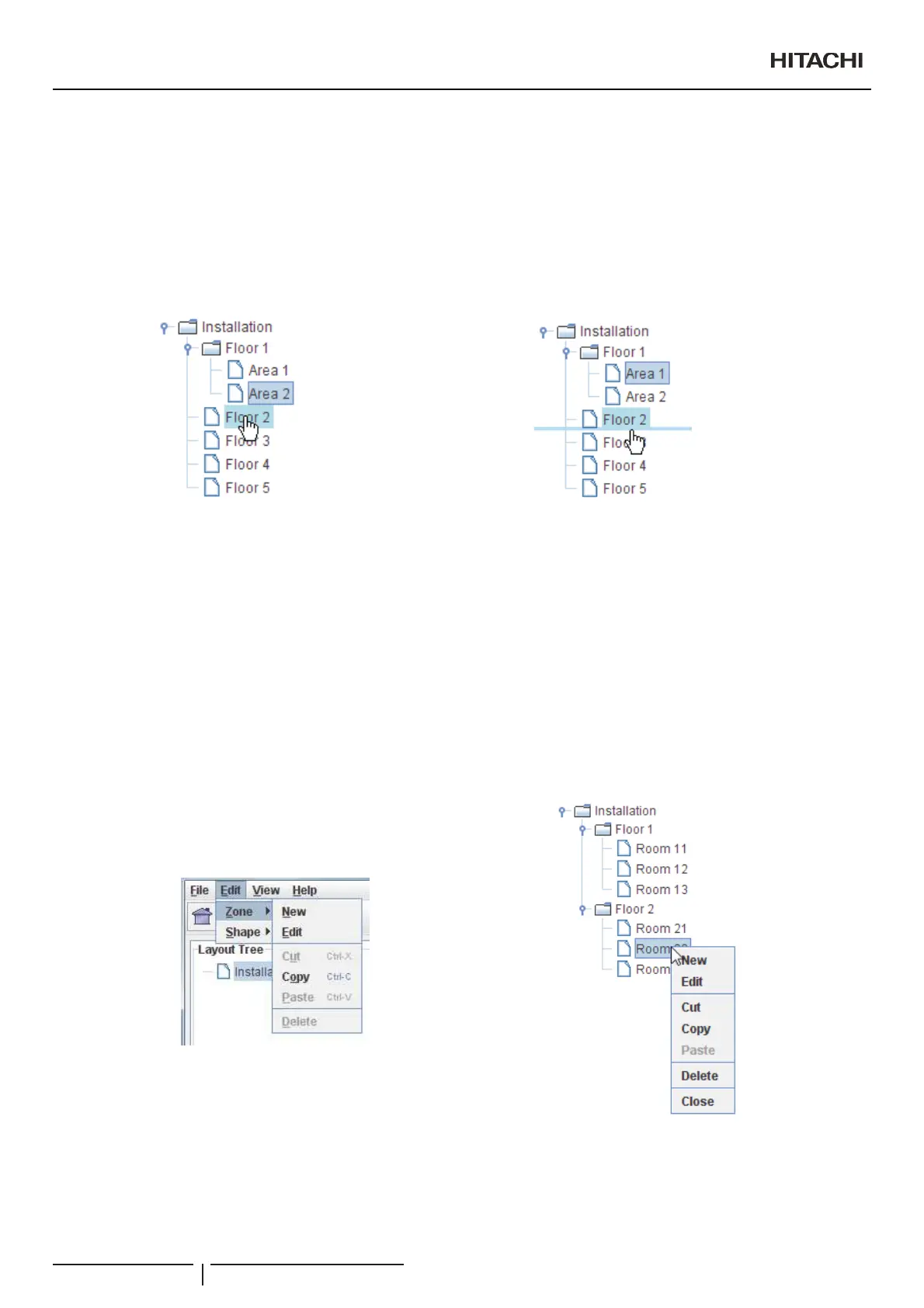 Paste: copy the zone stored on clipboard as a child of the selected zone. Remember that root zone is not allowed to be deleted.
