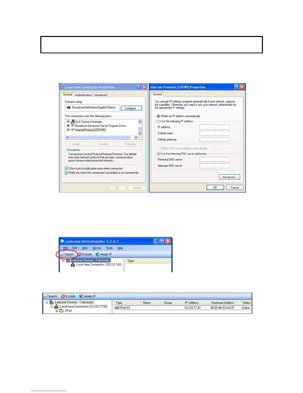 DeviceInstaller application by START > ALL PROGRAMS > LANTRONIX > DeviceInstaller