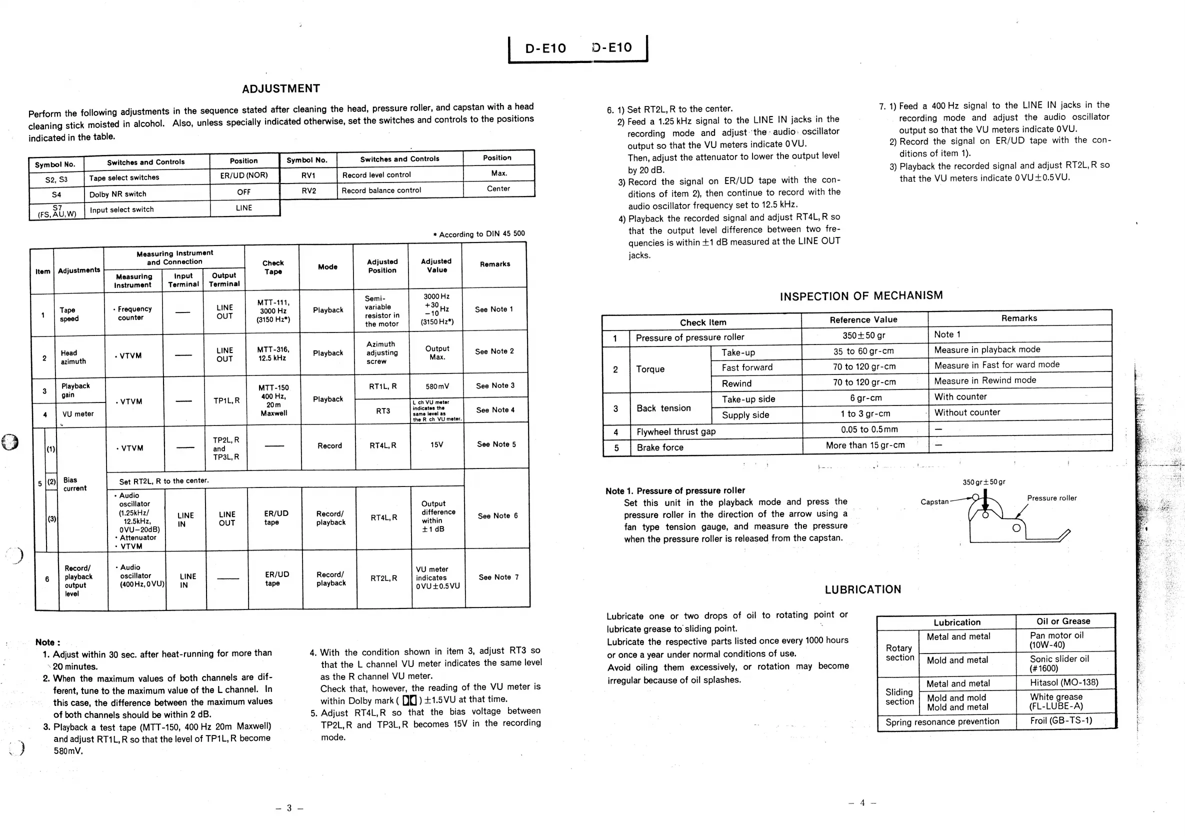 Hitachi D-E10U - Adjustment; Inspection of Mechanism; Lubrication