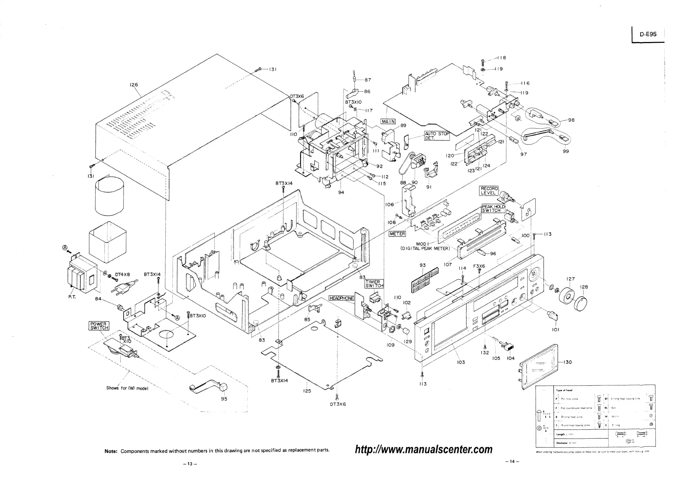 Hitachi D-E95 - EXPLODED VIEW (Cabinet); Cabinet Component Layout