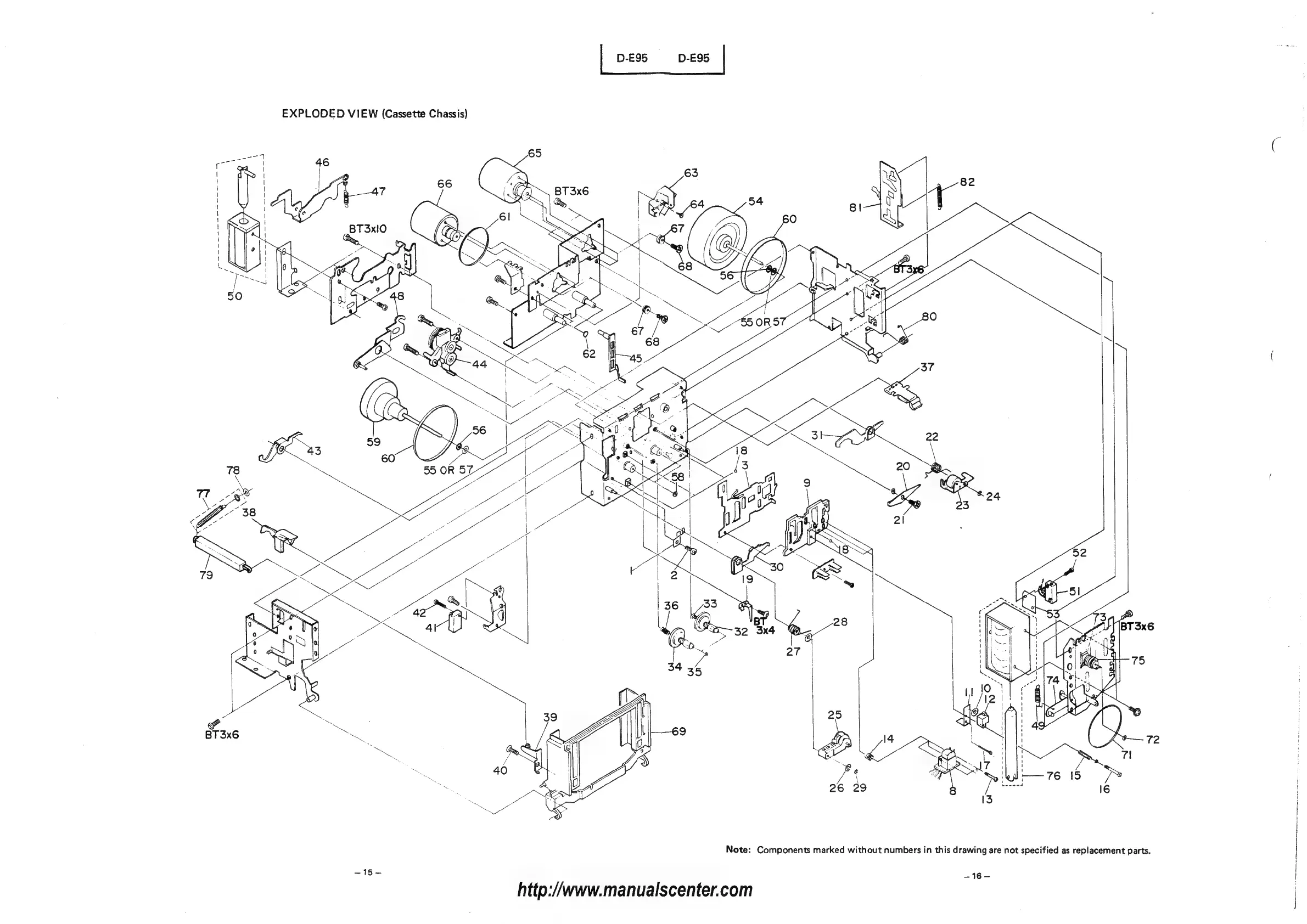 Hitachi D-E95 - EXPLODED VIEW (Cassette Chassis); Cassette Chassis Component Layout