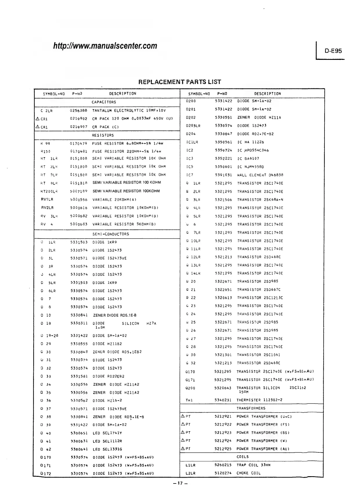 Hitachi D-E95 - REPLACEMENT PARTS LIST; Component Part Numbers (cont.)