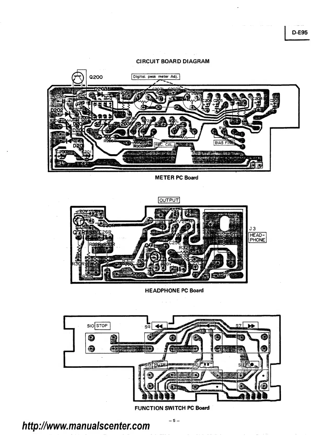 Hitachi D-E95 - CIRCUIT BOARD DIAGRAMS; Meter, Headphone, and Function Switch Boards