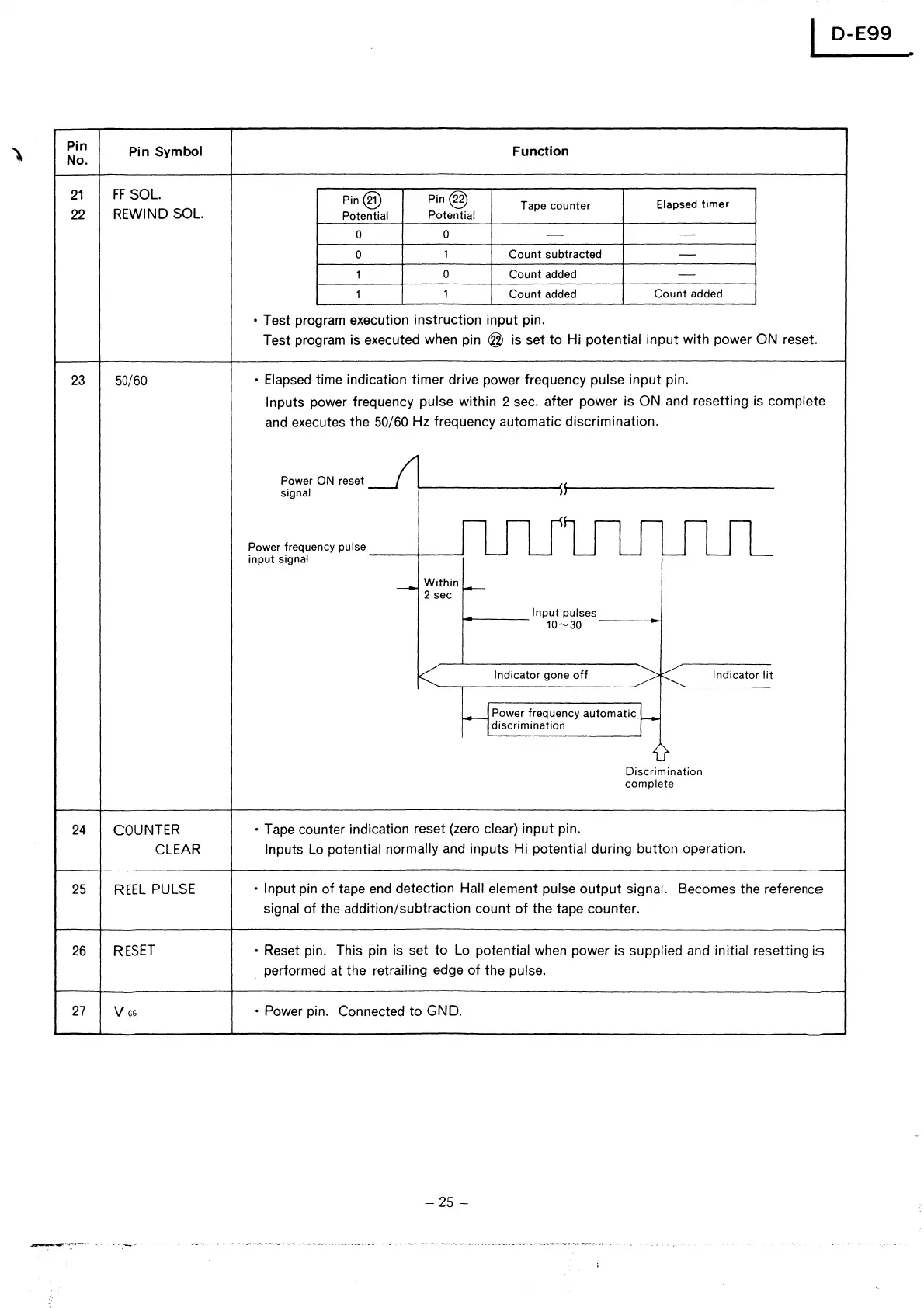 time indication timer drive power frequency pulse input pin.