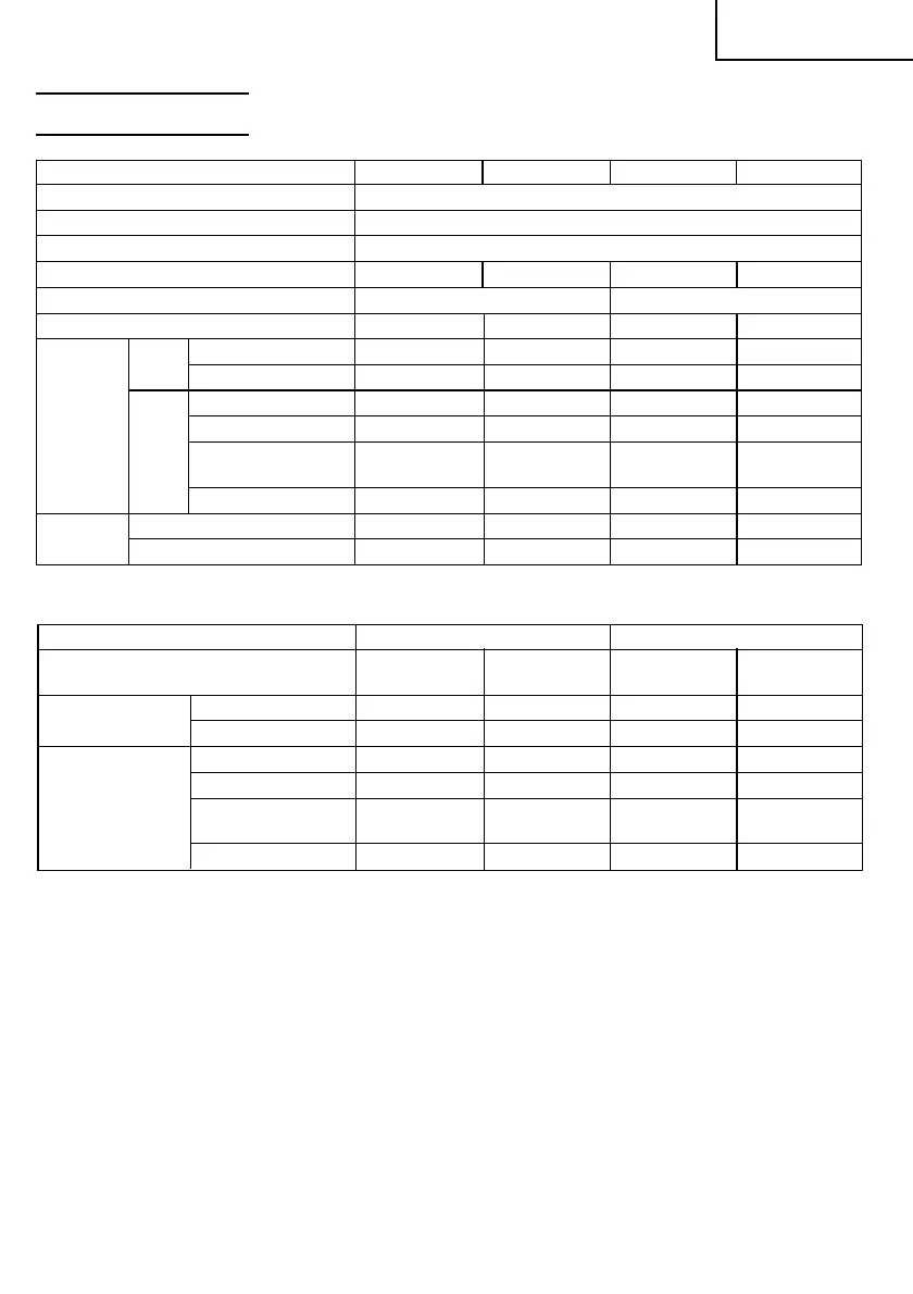 Vitesse sans charge 0-3000/min. 0-1200/min. 0-850/min. 0-600/min.