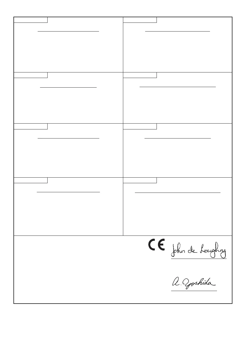 EN61000-3-3 in conformità alle Direttive 2004/108/CE e 2006/42/CE.