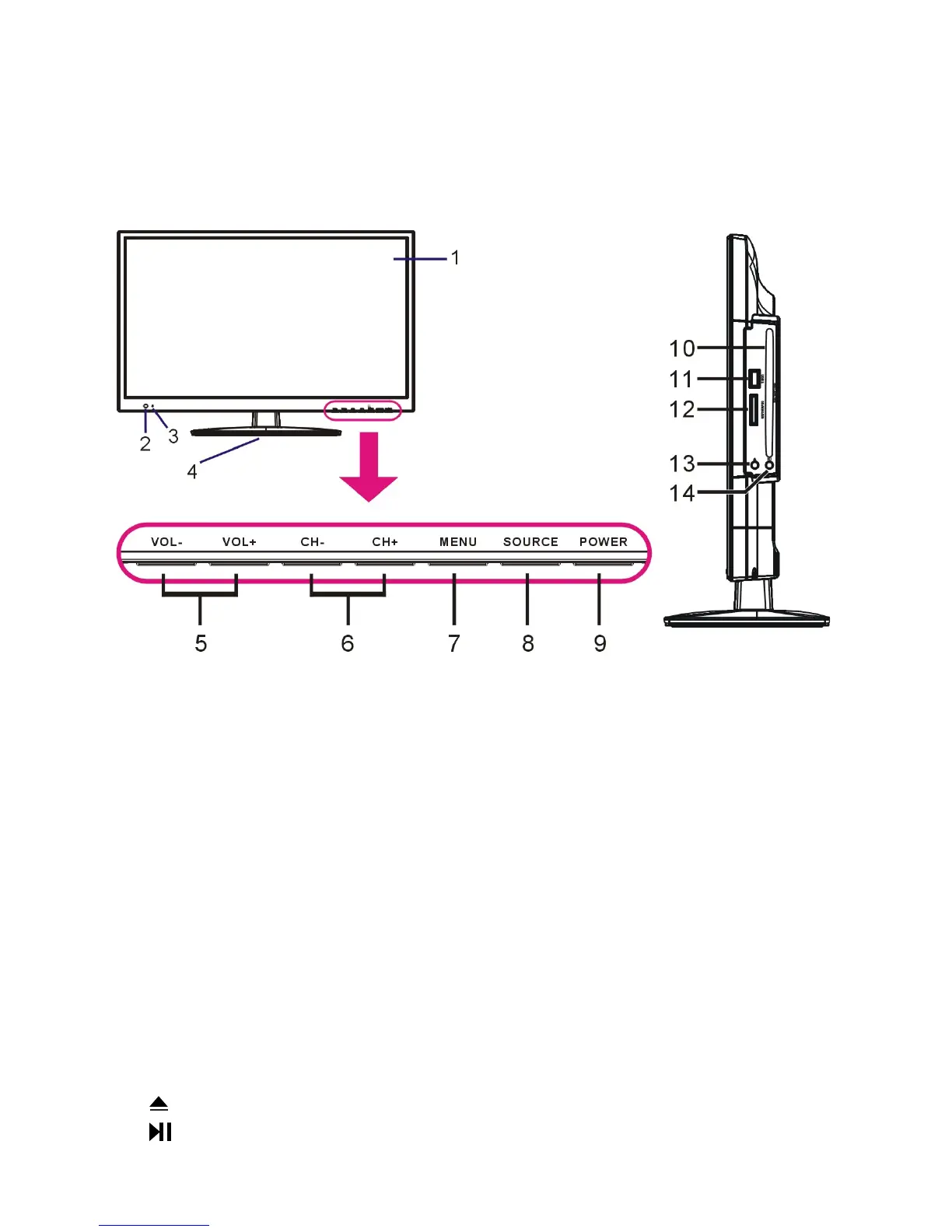 12 SD/MMC/MS Card slot: for multimedia file playback (in DVD mode).