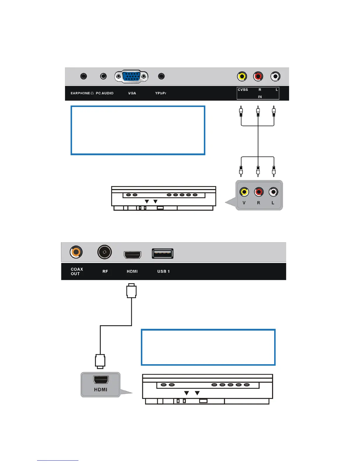 and CVBS (yellow) cable to connect