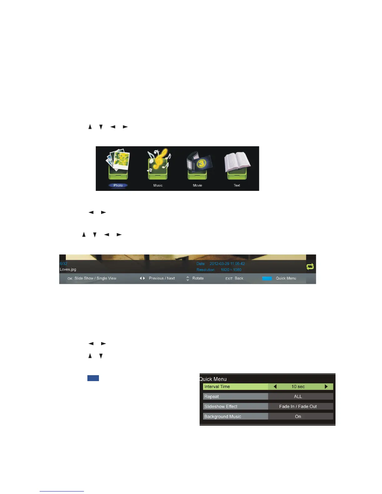 sPress the / buttons to select Photo in the main menu, then press OK to