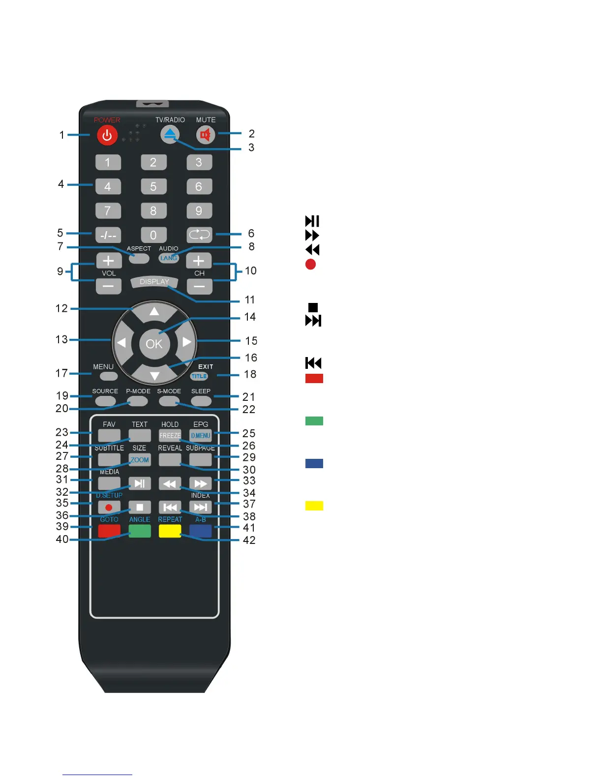 42 YELLOW button (TV)