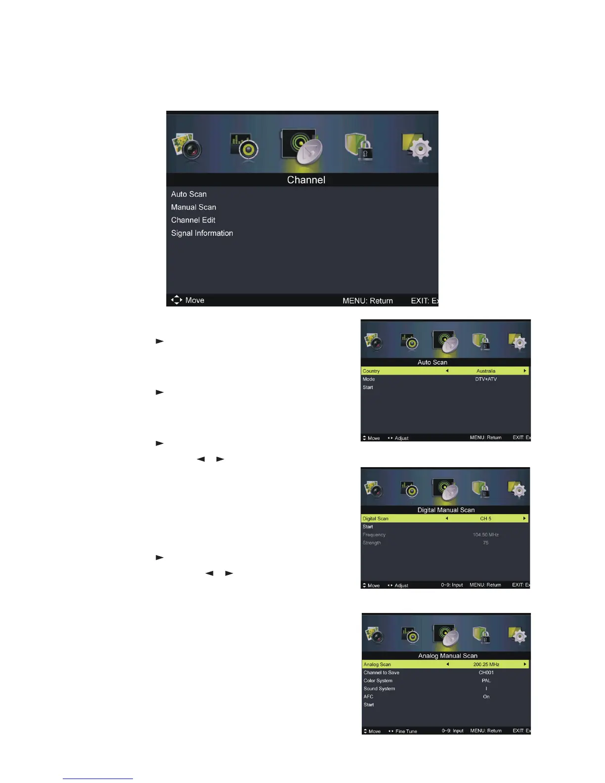Channel menu (DVT & ATV mode)