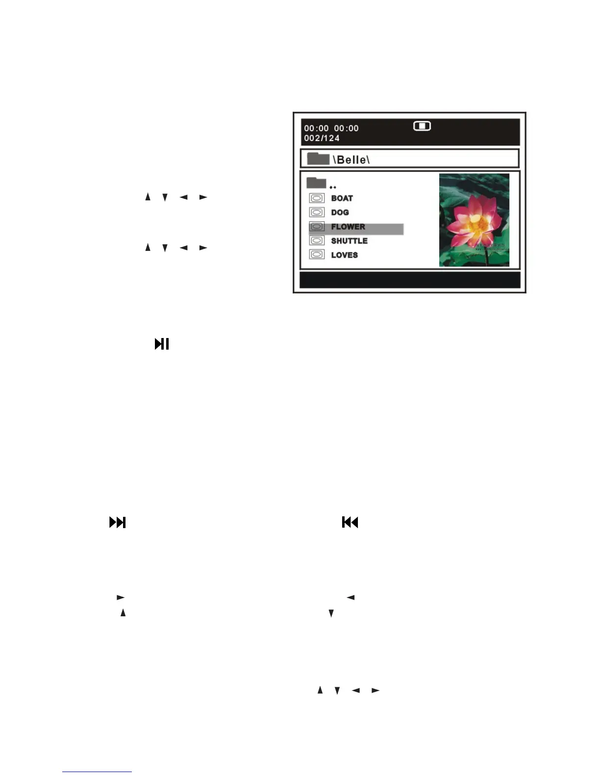 5. During playback, press the D.MENU button to return to the file selection page.
