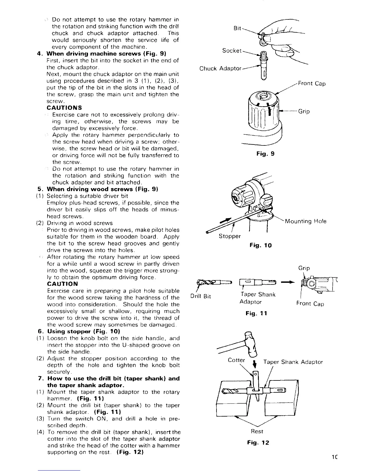 Hitachi DH 22VB - Driving Screws and Wood Screws; Using Depth Stopper and Taper Shank Bits