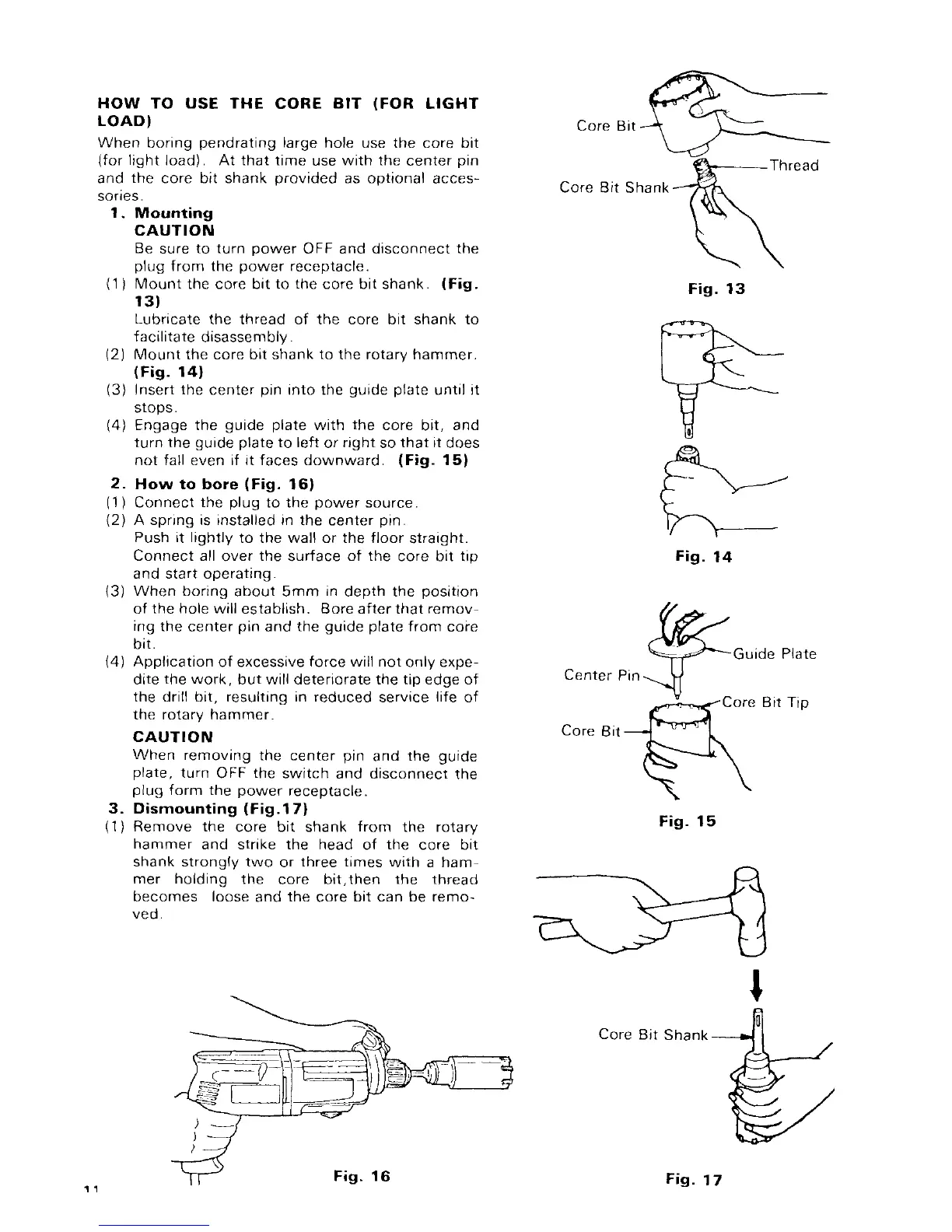 Hitachi DH 22VB - CORE BIT OPERATION GUIDE; Core Bit Mounting and Boring Procedure; Core Bit Dismounting Instructions