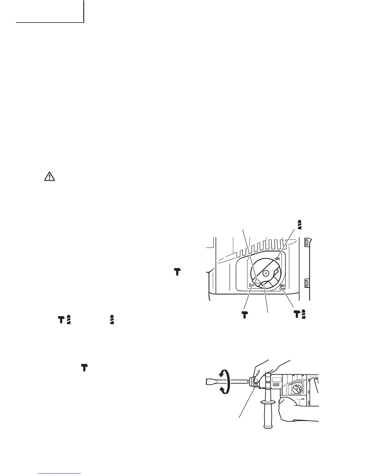 䡬 No intente emplear la perforadora de percusión en la función de rotación y