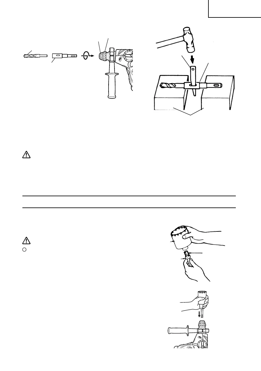 Utiliser la couronne pour percer de grands trous. L’utiliser avec le goujon central et