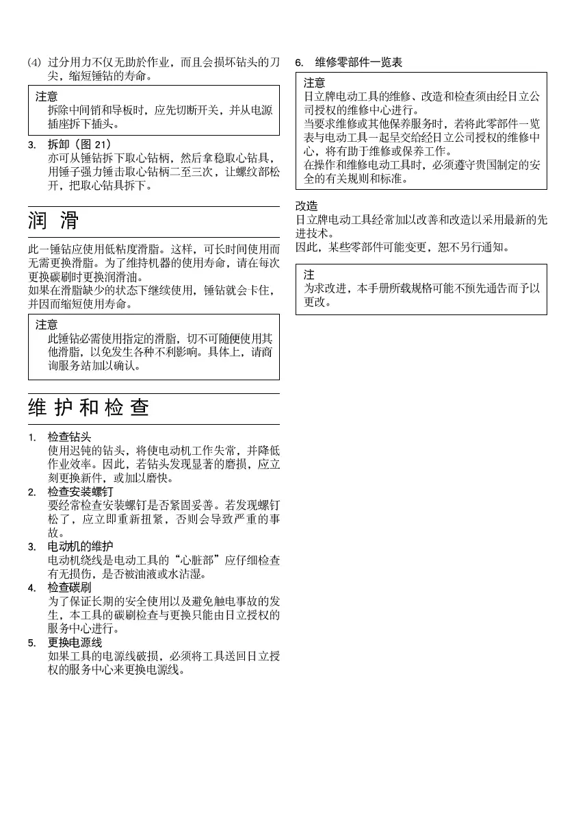 Hitachi DH24PH - Lubrication; Maintenance and Inspection; Inspecting the drill bits; Inspecting the mounting screws