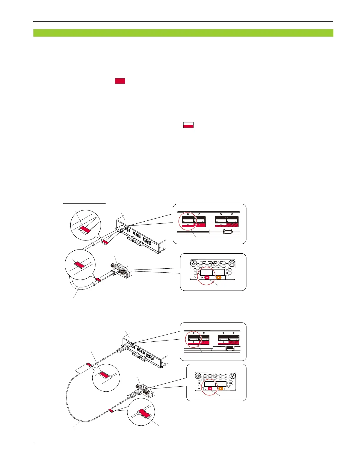: Connect the cable to which the red and white label is attached to the