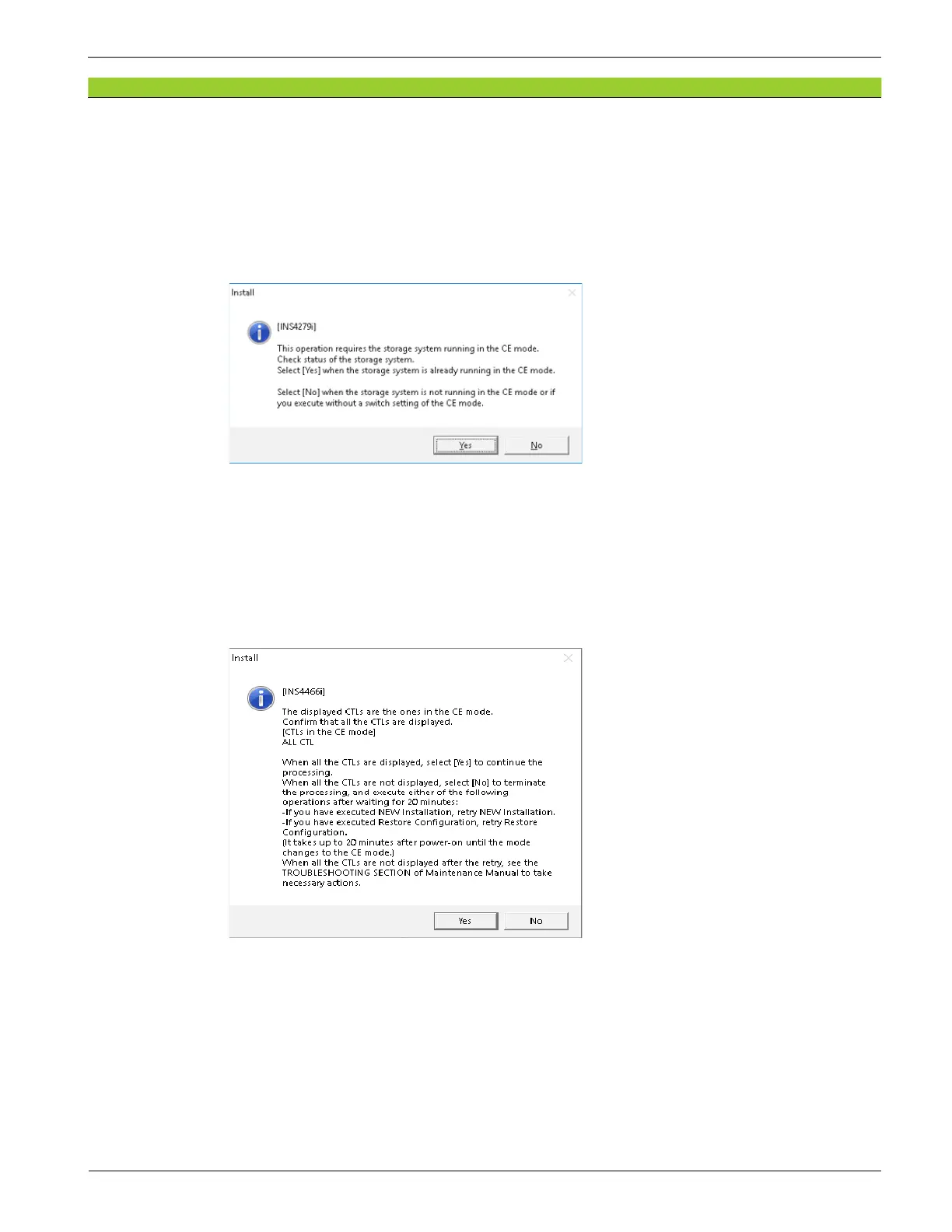 Select [No] when the storage system is not running in the CE mode or if you execute without a