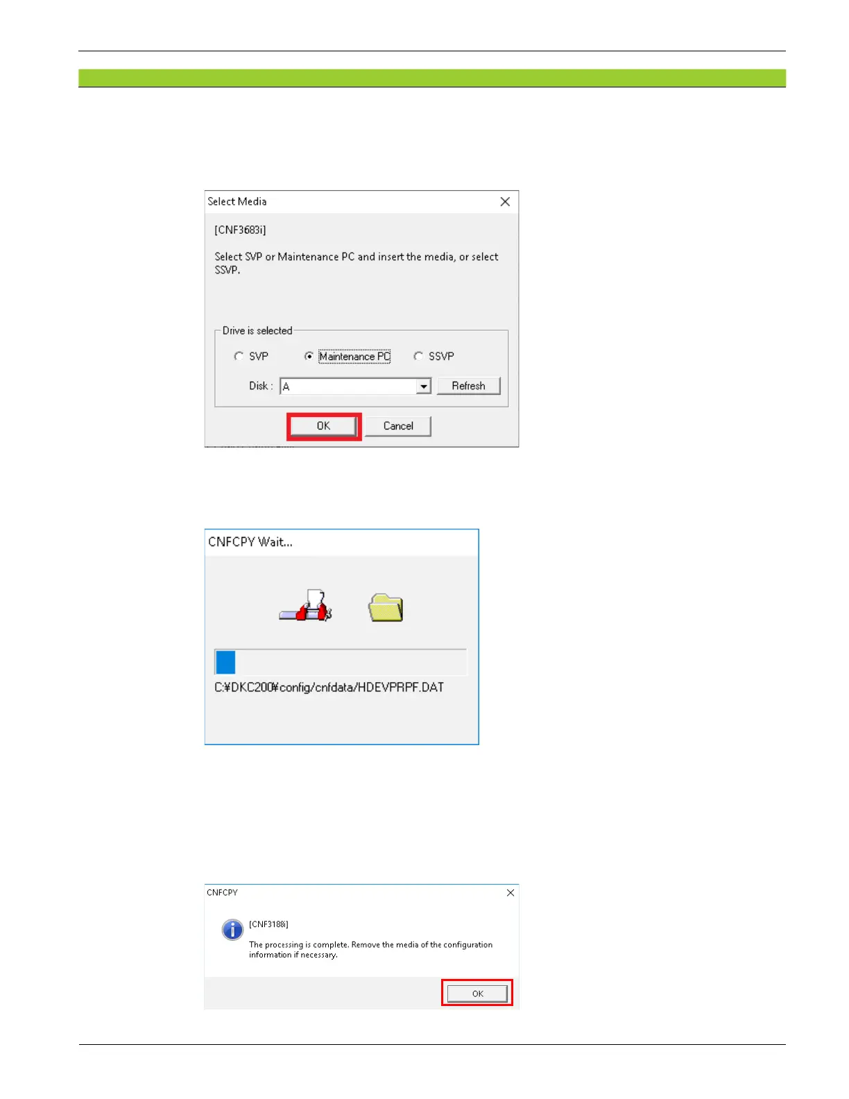 Remove the media of the conguration information if necessary.”, click [OK] .