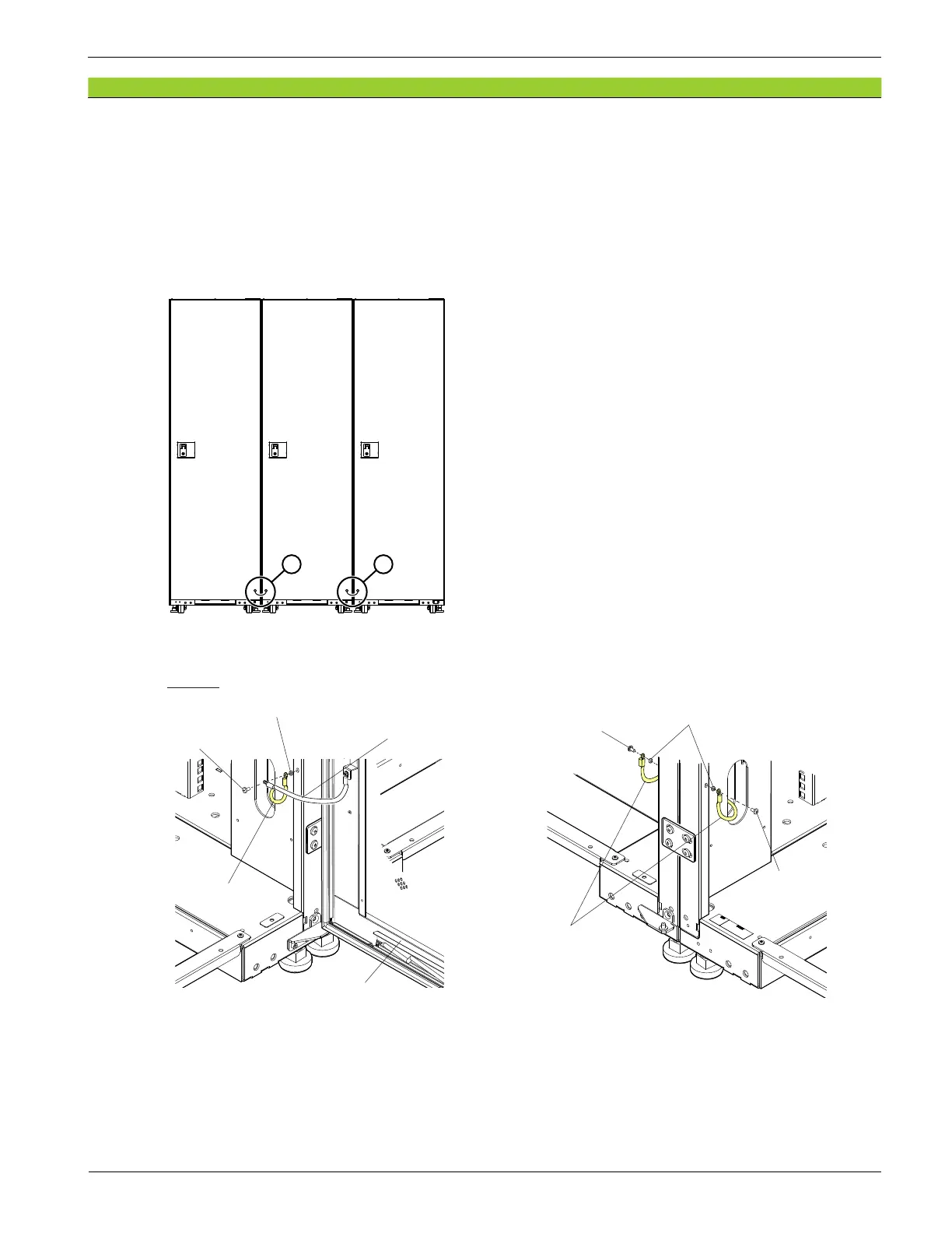 (2) Attach the two FG cables for rack frame connection, and secure them with the two lock washers