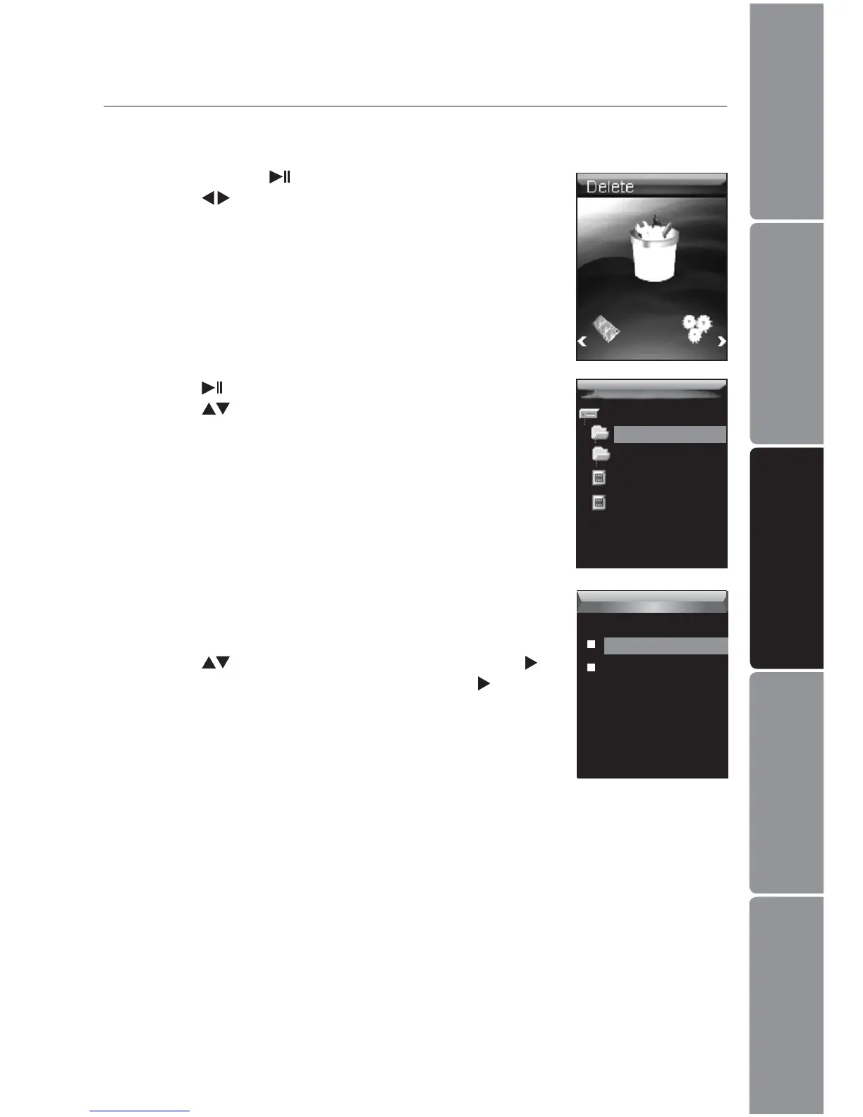 In the Delete mode, you can delete the les and folders stored on your MP3 player